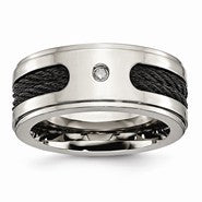Titanium Black IP-plated Cables w/Diamond 10mm Polished Wedding Band Ring
