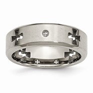 Titanium Celtic Cross Cut Out w/Diamond 7mm Brushed Wedding Band Ring