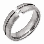 Titanium Grooved 6mm Diamond Polished & Brushed Wedding Band Ring
