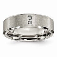 Titanium Satin & Polished with Diamonds 7mm Wedding Band Ring