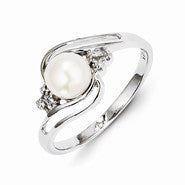 Protected by our 30 Day Money Back Guarantee!Width:2 mmStone Type: Pearl, DiamondDiamond Weight: 0.01 CTPolished FinishOpen back, Rhodium-platedJewelry Rings for womens Free U.S. Shipping for orders over $99