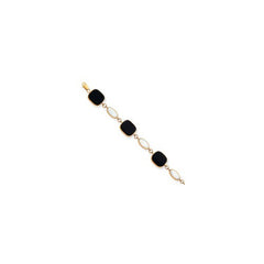 14K Yellow Gold Polished Genuine Fancy Onyx & Created Opal Bracelet