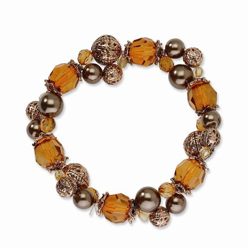 Copper-tone Lt. Colorado & Brown Acrylic Beads Stretch Bracelet