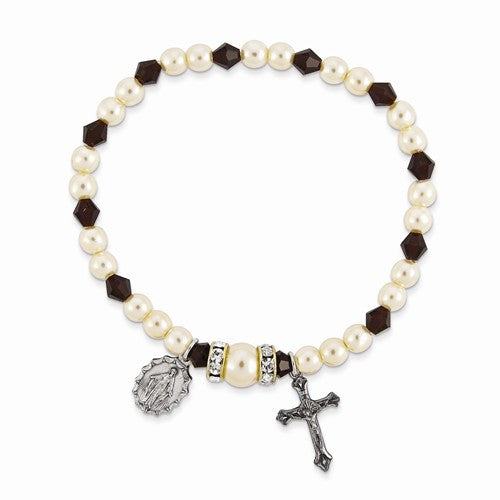 January Crystal & Faux Pearl Stretch Miraculous & Crucifix Bracelet