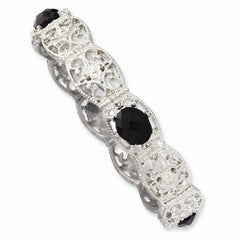 Silver-tone Black Acrylic Stones Stretch Bracelet