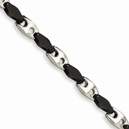 Stainless Steel and Black Color Ip-Plated Accent Fancy Bracelet