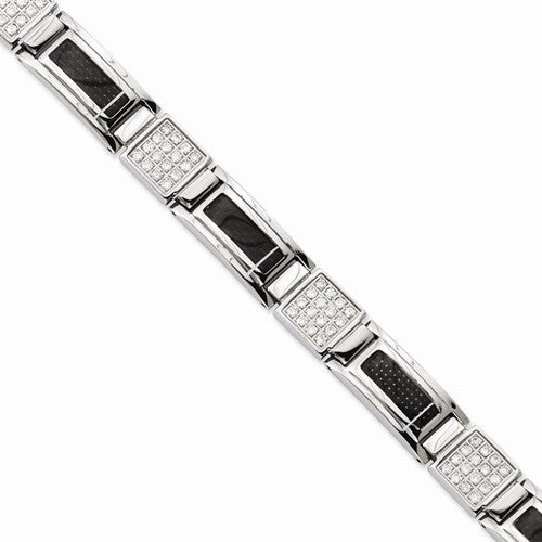 Stainless Steel Black Carbon Fiber & Cz Bracelet