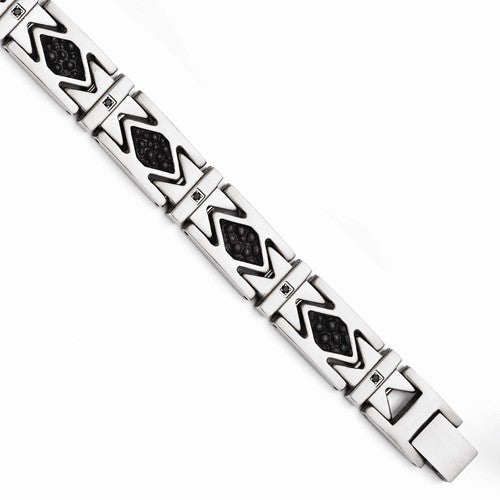 Stainless Steel Black Ip-Plated Black Cz Brushed Bracelet