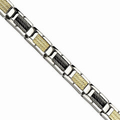 Stainless Steel Black Ip-Plated Wire and 14K Bracelet