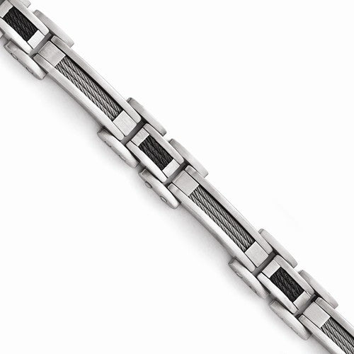 Stainless Steel Brushed Black Ip-Plated Wire Inlay Bracelet