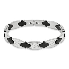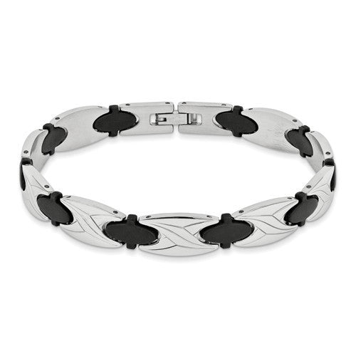 Stainless Steel Mens Bracelet with Black Rubber Design Bracelet