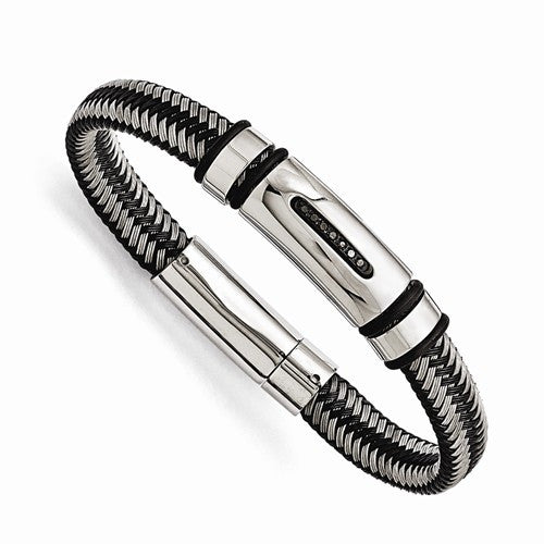 Stainless Steel Polished Black Ip-Plated Diamond Bracelet