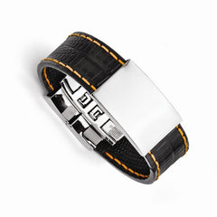 Stainless Steel Shiny Polished Plate Black with Orange Stitching Bracelet