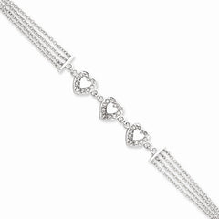 Sterling Silver Multi-Strand Cz Heart Bracelet