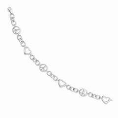 Sterling Silver Peace Sign and Heart Link Bracelet