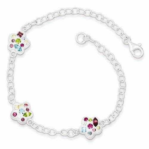 Sterling Silver Stellux Multi Color Crystal Flower Bracelet