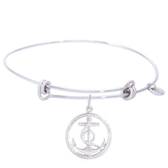 Protected by our Lifetime Warranty!Create your own expression with our Balanced Bangle Bracelet made from Sterling Silver. Each bracelet is rhodium plated to prevent tarnishing and give it a lasting brilliant finish. The Ships Anchor In Rope Circle Charm represents strength and is perfect for Christians, anyone in the Navy or those looking to keep up with nautical trendsCharm Height:...