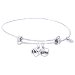 Protected by our Lifetime Warranty!Create your own expression with our Balanced Bangle Bracelet made from Sterling Silver. Each bracelet is rhodium plated to prevent tarnishing and give it a lasting brilliant finish. Share the Best Friends Hearts Charm with your BFF. Hearts split apart; keep one and gift one. Initials can be engraved on back.Charm Height: 3/8 in. ~ (10.12...