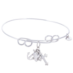 Protected by our Lifetime Warranty!Create your own expression with our Carefree Bangle Bracelet made from Sterling Silver. Each bracelet is rhodium plated to prevent tarnishing and give it a lasting brilliant finish. Express your belief in the three great virtues with the Faith, Hope, Charity Charm.Charm Height: 1/2 in. ~ (14.85 mm)Charm Width: 3/8 in. ~ (9.35 mm)Sterling Silver Symbols...