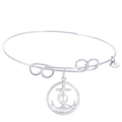 Protected by our Lifetime Warranty!Create your own expression with our Carefree Bangle Bracelet made from Sterling Silver. Each bracelet is rhodium plated to prevent tarnishing and give it a lasting brilliant finish. The Ships Anchor In Rope Circle Charm represents strength and is perfect for Christians, anyone in the Navy or those looking to keep up with nautical trendsCharm Height:...