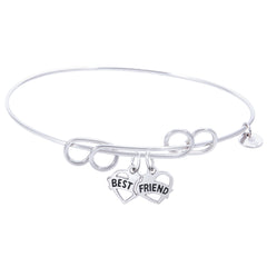 Protected by our Lifetime Warranty!Create your own expression with our Carefree Bangle Bracelet made from Sterling Silver. Each bracelet is rhodium plated to prevent tarnishing and give it a lasting brilliant finish. Share the Best Friends Hearts Charm with your BFF. Hearts split apart; keep one and gift one. Initials can be engraved on back.Charm Height: 3/8 in. ~ (10.12...