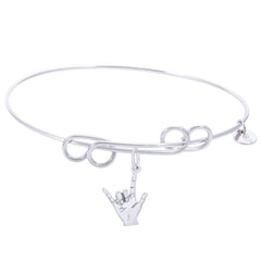 Protected by our Lifetime Warranty!Create your own expression with our Carefree Bangle Bracelet made from Sterling Silver. Each bracelet is rhodium plated to prevent tarnishing and give it a lasting brilliant finish. Spread love for your sweetheart with the I Love You Hand Sign Charm. A great charm addition for any anniversary or celebrationCharm Height: 1/2 in. ~ (13.57 mm)Charm...
