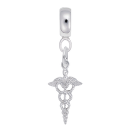 A sign of profession. Place this sterling silver solid 3D caduceus charm dangle bead on your charm dangle bead bracelet.