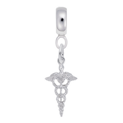 Caduceus Charm Dangle Bead In Sterling Silver