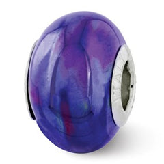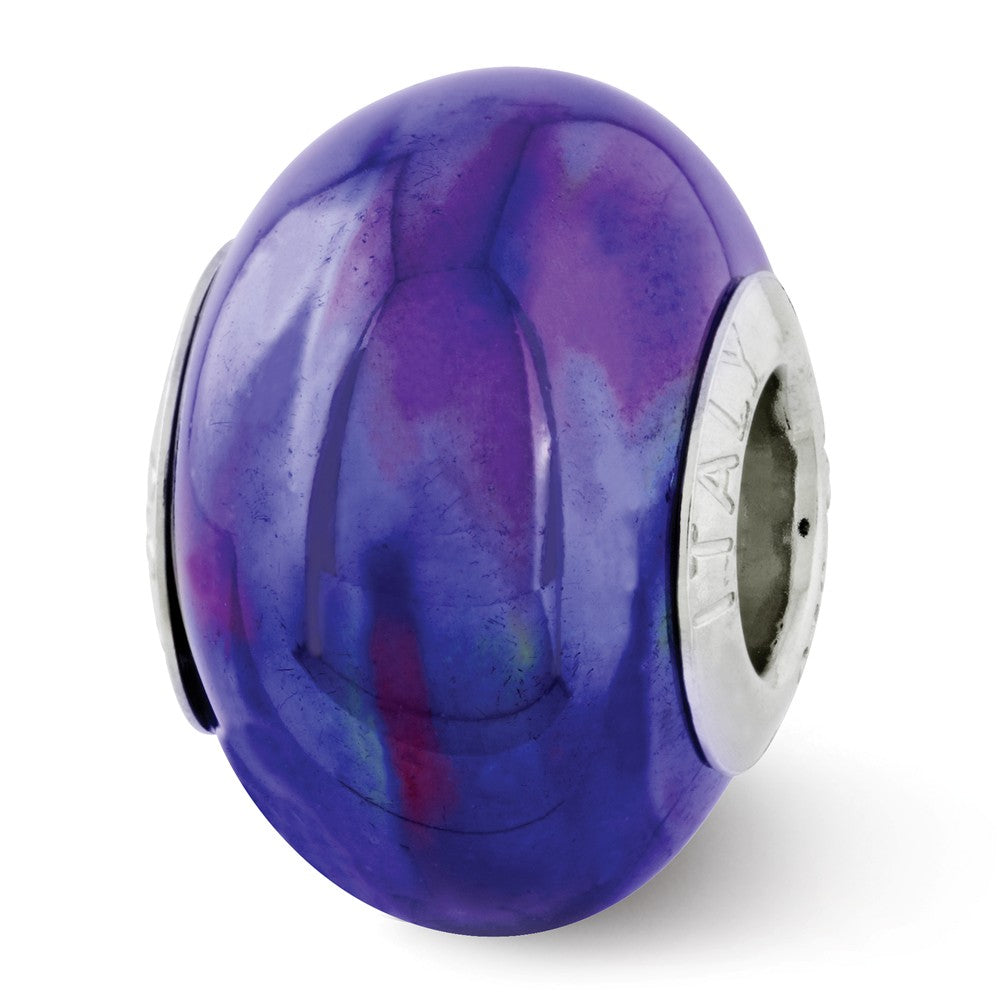 Blue/Purple Ceramic Charm Bead in Sterling Silver