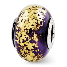 Dark Purple w/Gold Foil Ceramic Charm Bead in Sterling Silver