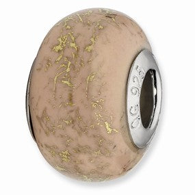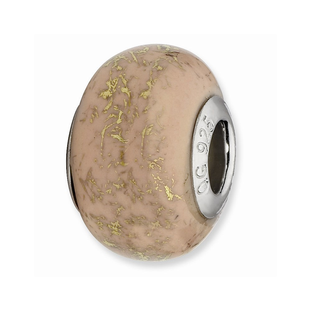 Light Pink w/Gold Foil Ceramic Charm Bead in Sterling Silver