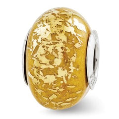 Yellow w/Gold Foil Ceramic Charm Bead in Sterling Silver