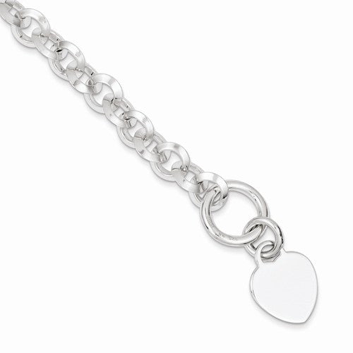 Sterling Silver Engraveable Heart Disc On Fancy Link Toggle Bracelet
