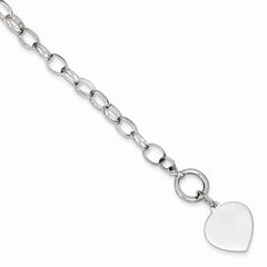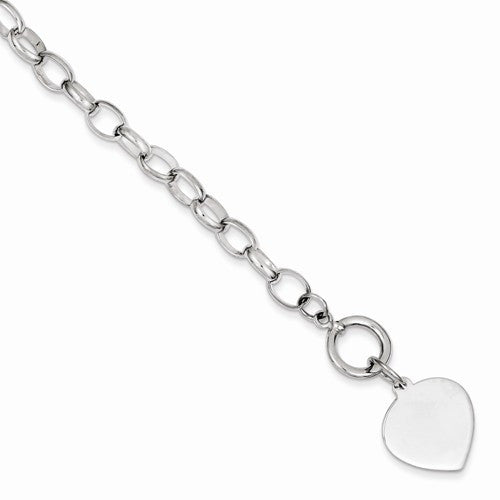 Sterling Silver Engraveable Heart Disc On Fancy Link Toggle Bracelet