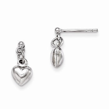Sterling Silver RH Plated Childs Polished Heart Post Dangle Earrings