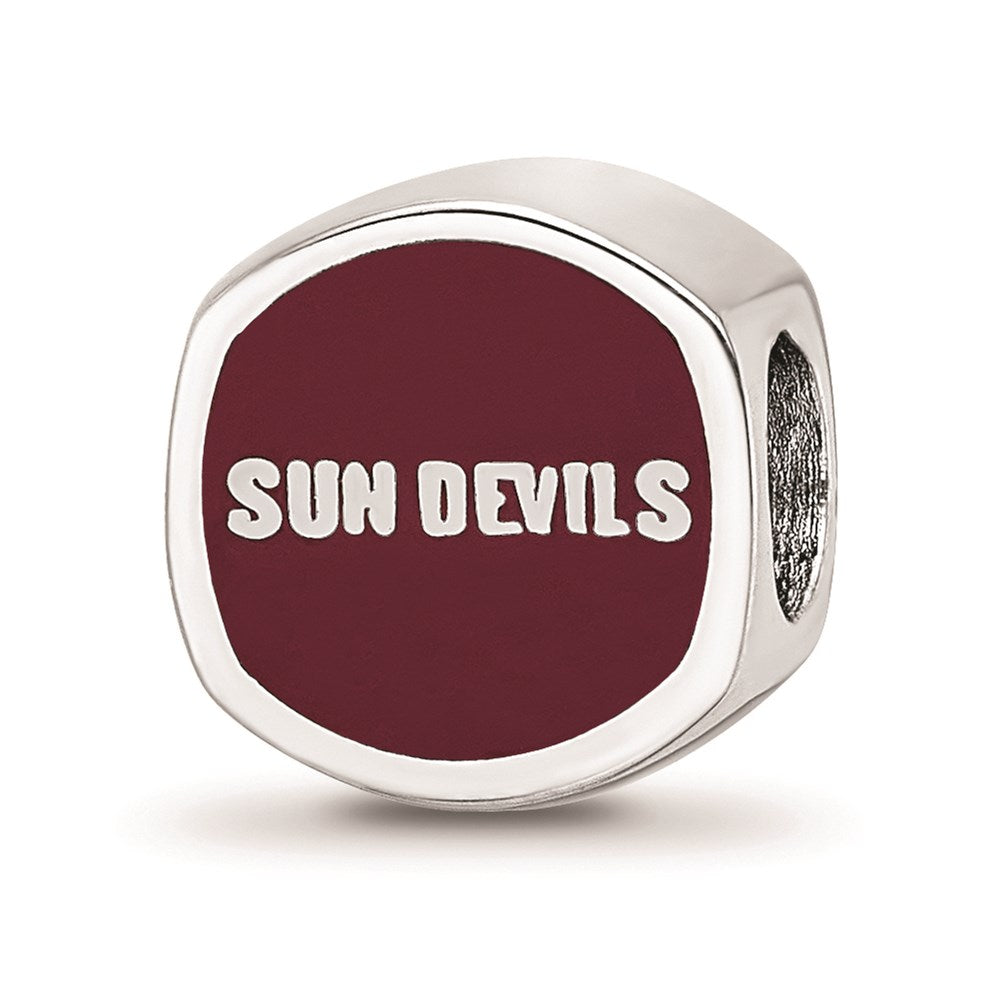 Arizona State U Pitchfork Cushion Shaped Logo Charm Bead in Sterling Silver
