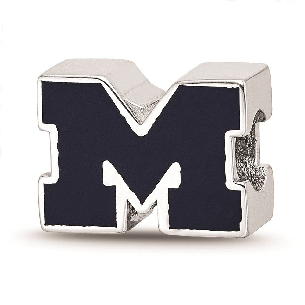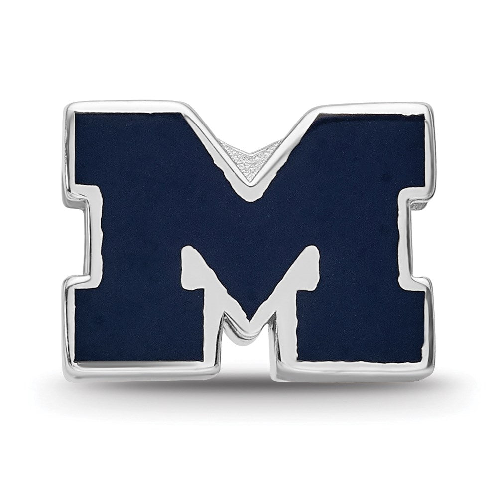 University of Michigan Block M Enameled 1-Sided Charm Bead in Sterling Silver