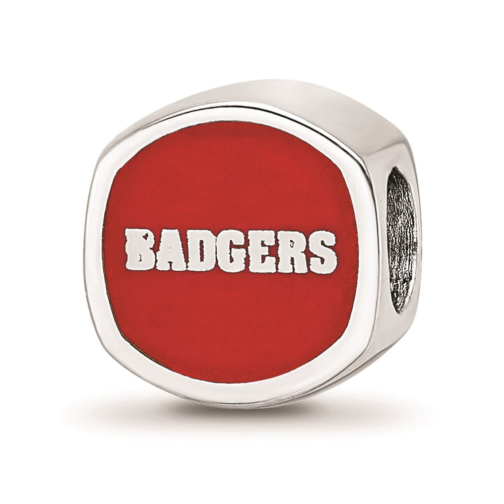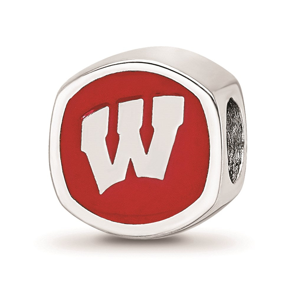 University of Wisconsin Cushion Shaped Logo Charm Bead in Sterling Silver