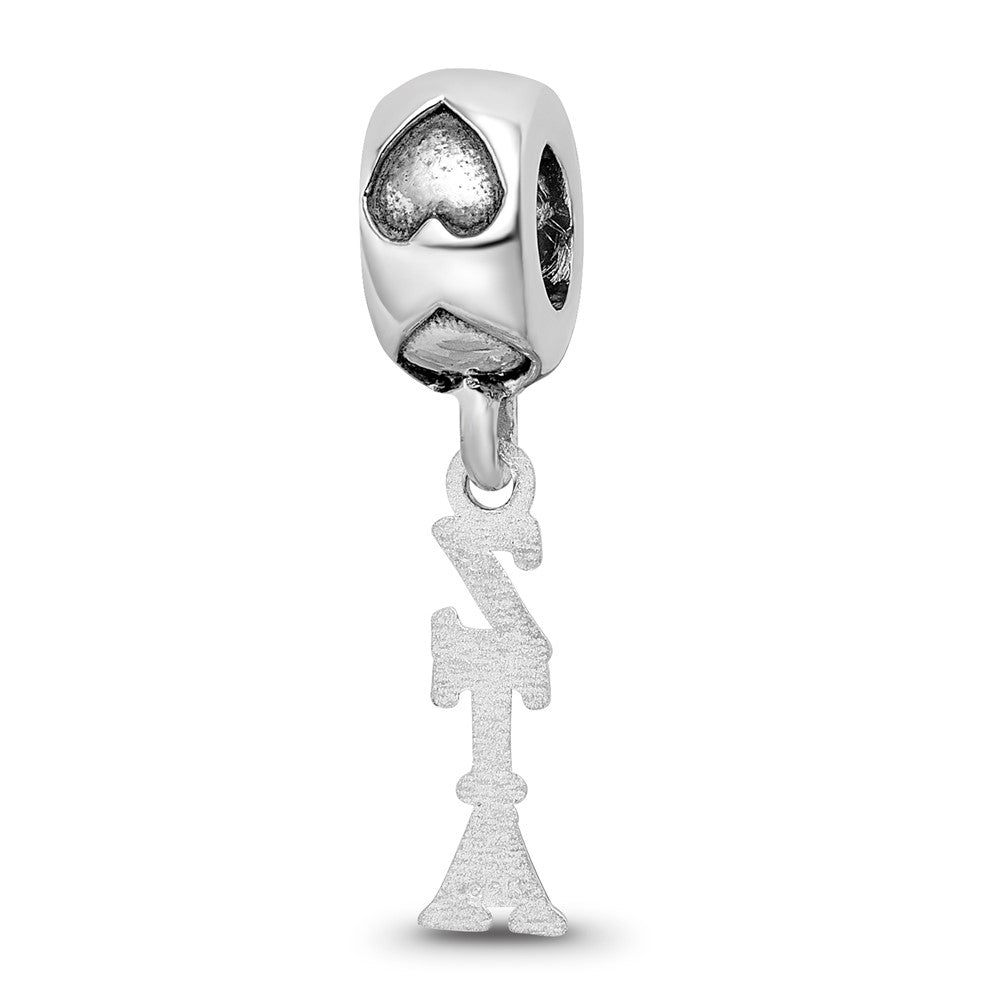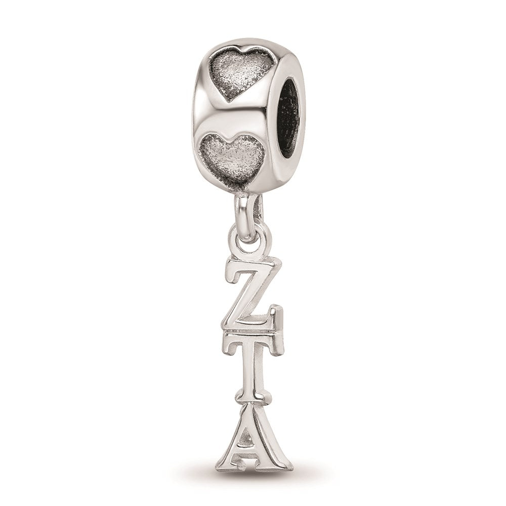 Zeta Tau Alpha Vertical Letters On Heart Charm Bead in Sterling Silver