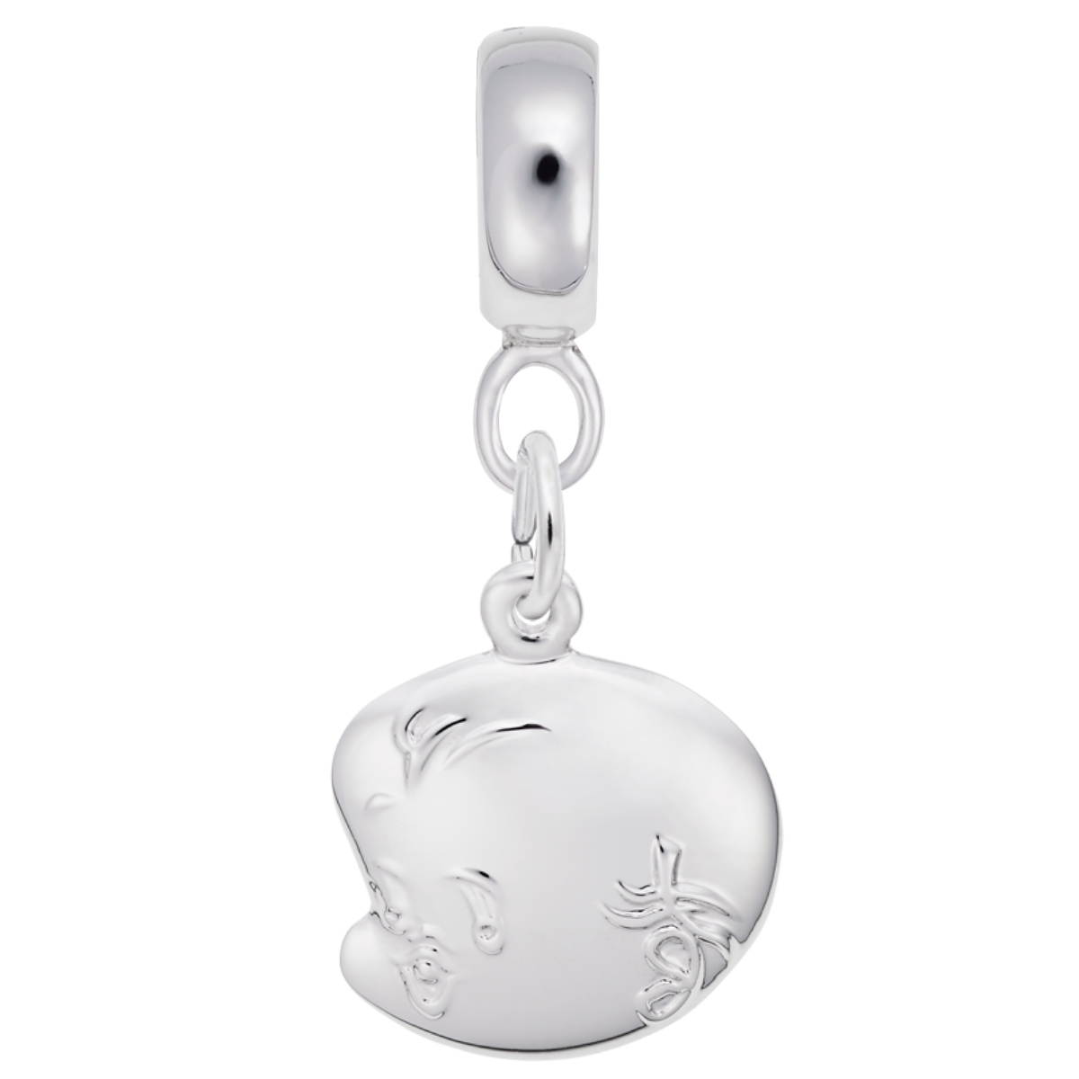A baby's face is a picture perfect shot of purity and innocence! Remember this moment by adding a Sterling Silver engravable babies face charm dangle bead in your collection.