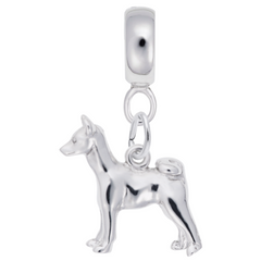 Basenji Dog Charm Dangle Bead In Sterling Silver