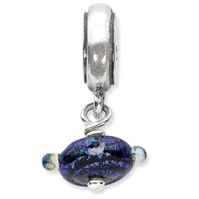Sterling Silver Blue Dichoric Glass Dangle Bead Charm hide-image