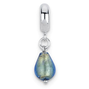 Blue Italian Murano Glass Charm Dangle Bead in Sterling Silver