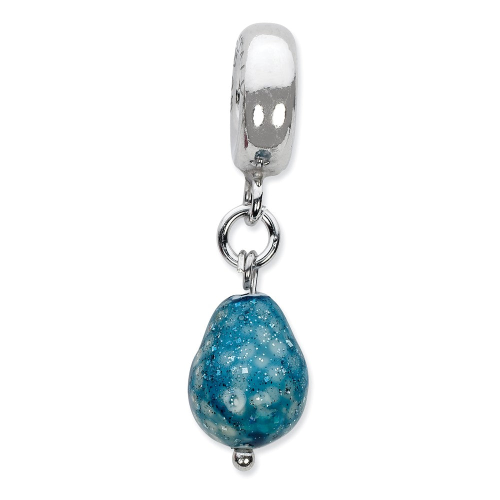 Sterling Silver Blue w/Glitter Overlay Glass Dangle Bead Charm hide-image