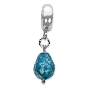 Blue w/Glitter Overlay Glass Charm Dangle Bead in Sterling Silver