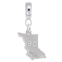 British Columbia Map Charm Dangle Bead In Sterling Silver