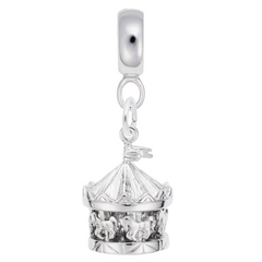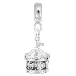 Go round and round till your head spins with this Sterling Silver 3D carousel charm dangle bead! This is a fun charm dangle bead for a great collection!