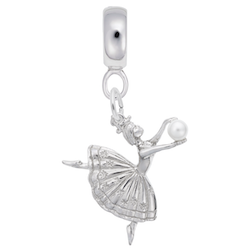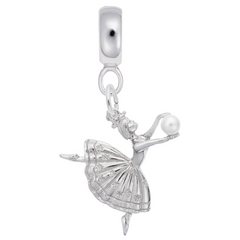 Dancer W/Pearl Charm Dangle Bead In Sterling Silver