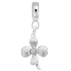 This unique flower is a beautiful bloom. Check it out with this Sterling Silver solid 3D dogwood charm dangle bead! A nice addition to charm dangle bead collections.
