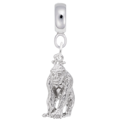 Gorilla Charm Dangle Bead In Sterling Silver